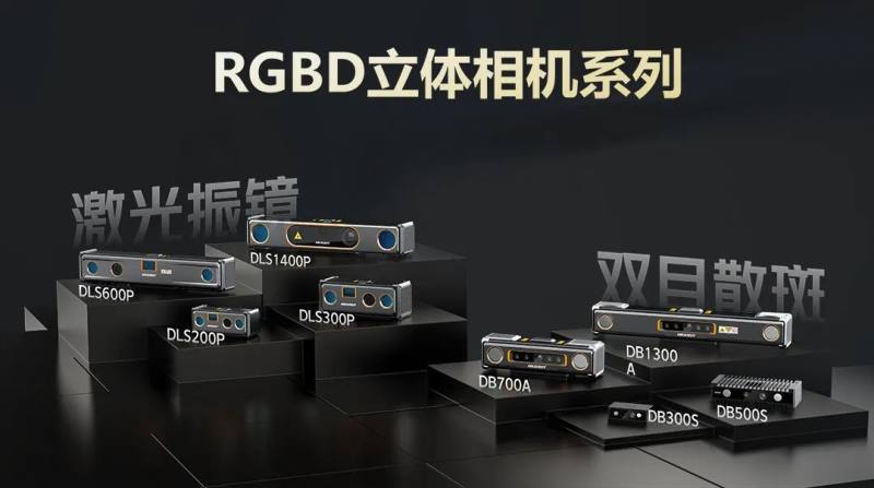 RGBD立体相机演化出了双目散斑系列和激光振镜系列。前者面向物流应用,后者专门为工件应用开发,均已推出多个型号,应对不同场景的视野要求。