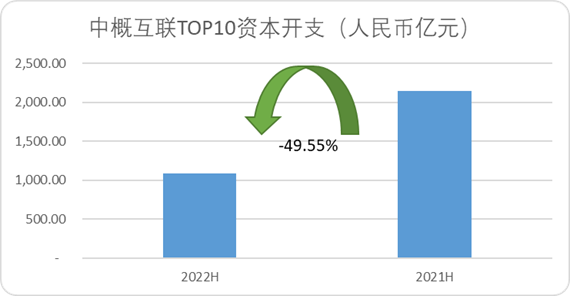 图:中概互联TOP10资本开支合计,来源:Choice金融客户端