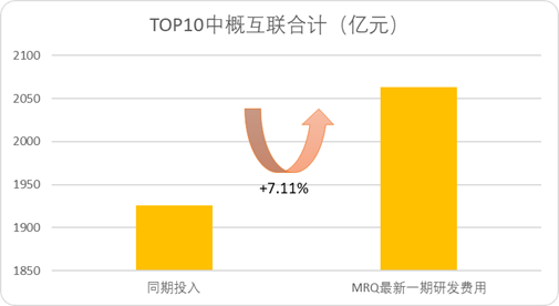 图:中概互联TOP10企业研发费用合计,来源:Choice金融客户端