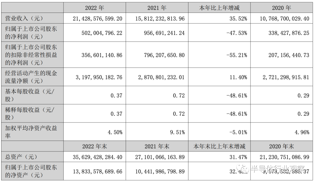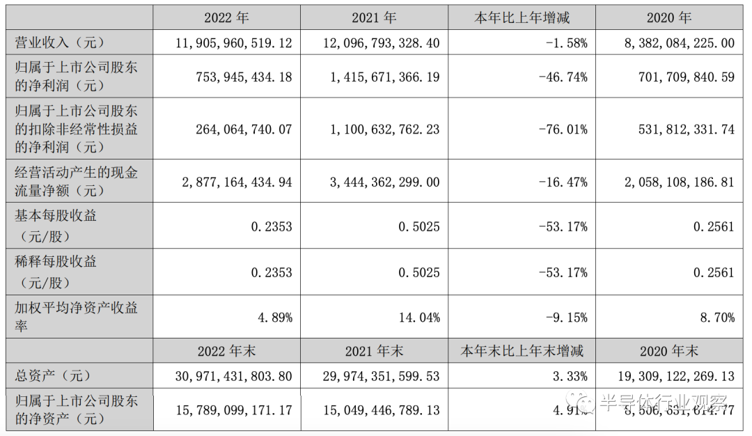 2022年长电科技全年实现营业收入337.6 亿元,同比增长10.7%;归属于上市公司股东的净利润32.3亿元,同比增长 9.2%。