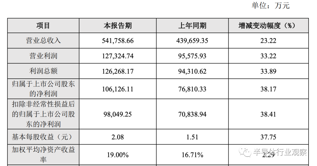 2022年扬杰科技实现营业收入 54 亿元,较上年同期增长 23.22%,归属于上市公司股东的净利润 10.6亿元,较上年同期增长 38.17%。