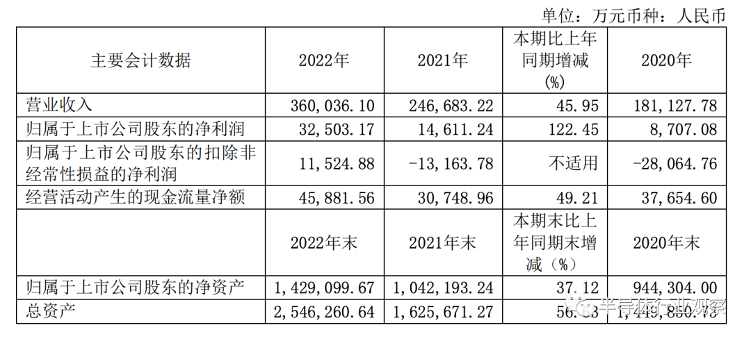 2022年沪硅产业实现营业收入为 36 亿元,较上年同期增长 45.95%;归属于上市公司股东净利润为 3.2 亿元,较上年同期增长 122.45%;归属于上市公司股东的扣除非经常性损益的净利润为11524.88 万元,较上年同期的 -13163.78 万元实现扭亏为盈。营业收入的增长,主要系公司下游半导体产品需求旺盛,且公司产能进一步释放,特别是公司 300mm 半导体硅片产品的销量增长显著所致。