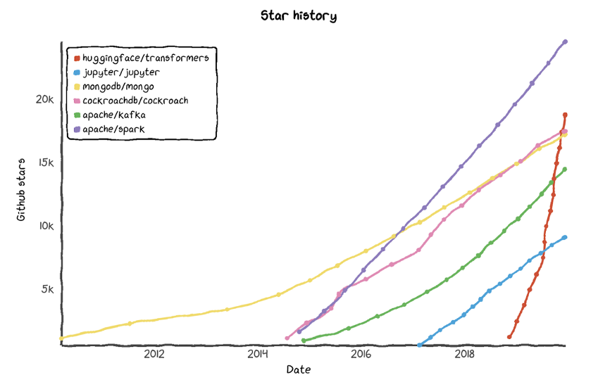 Hugging Face在Github上的Star曲线,图片来自于Lux Capital