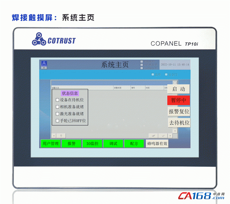 PACK线线体与焊接均选用合信TP10i以太网触摸屏进行组态通讯,提供丰富的功能操作,节省调试时间,方便操作员操作。