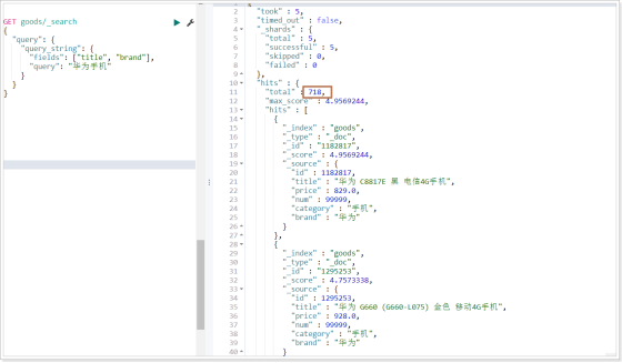 # 查询品牌为华为,并且title包含手机的数据