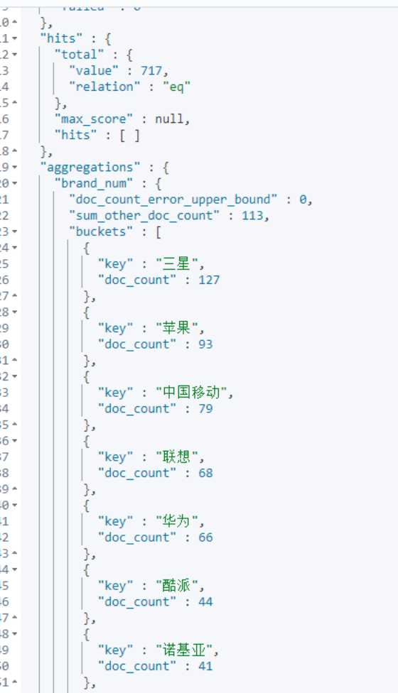 # 桶聚合:根据品牌聚合,看每个品牌的手机商品数据量