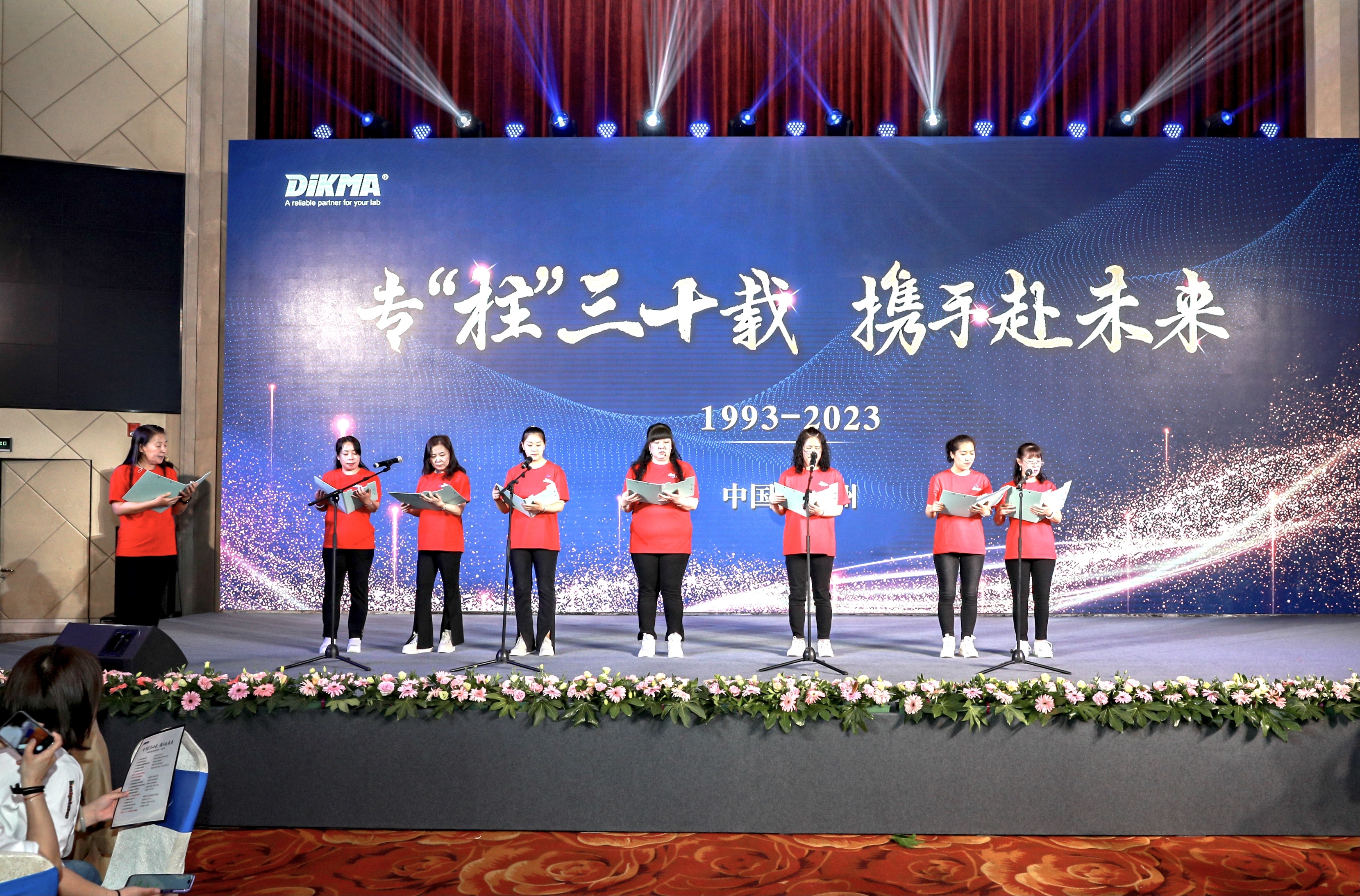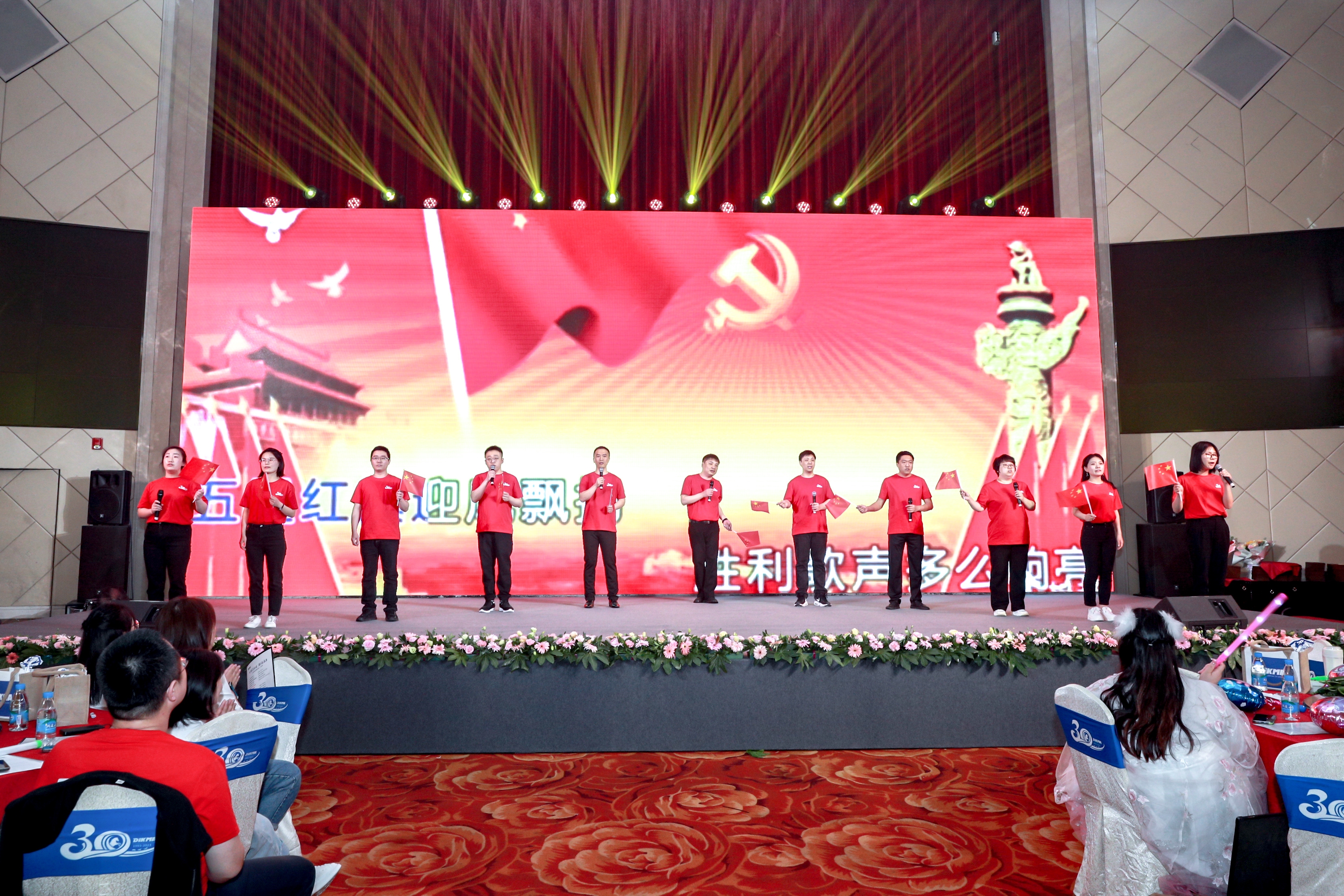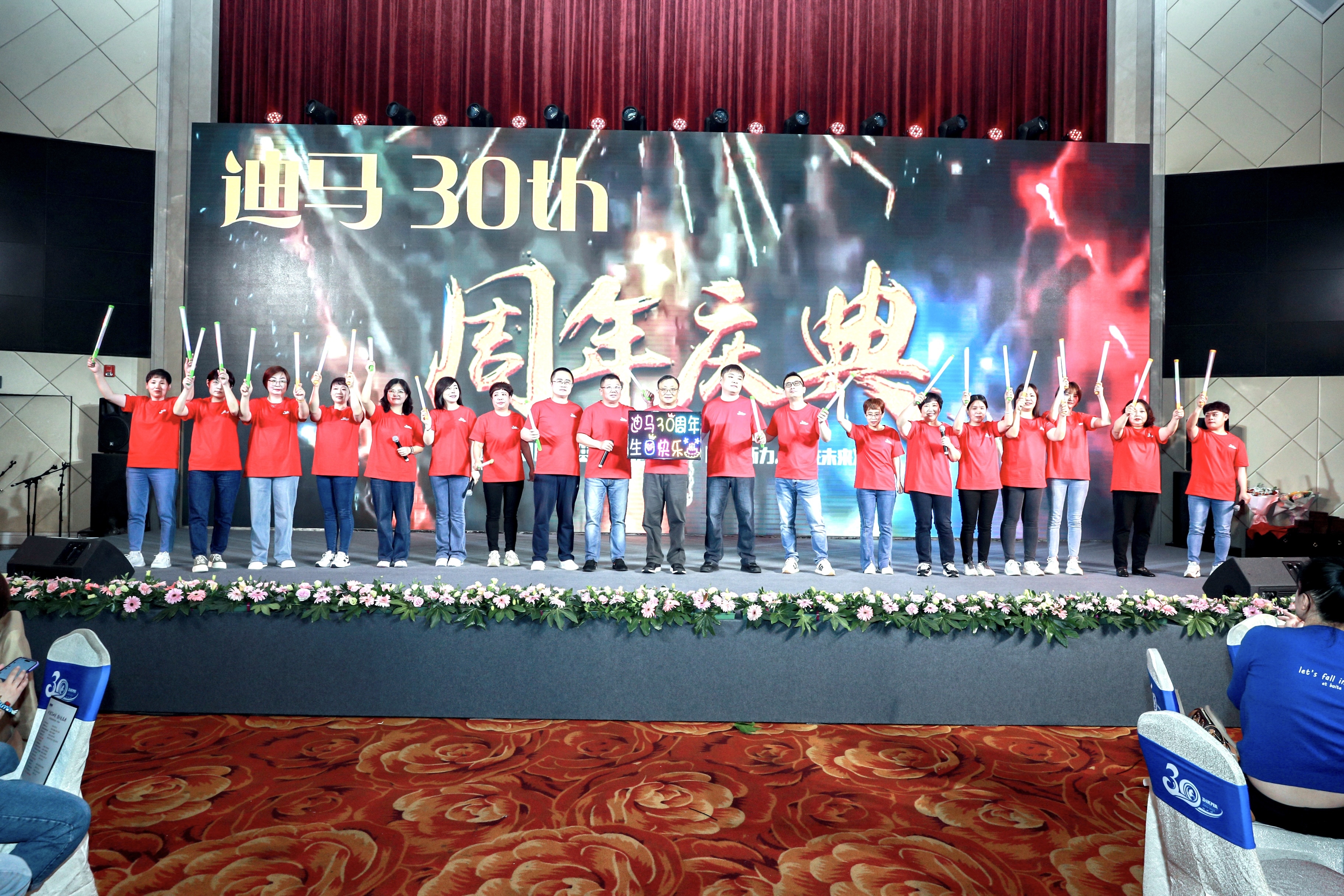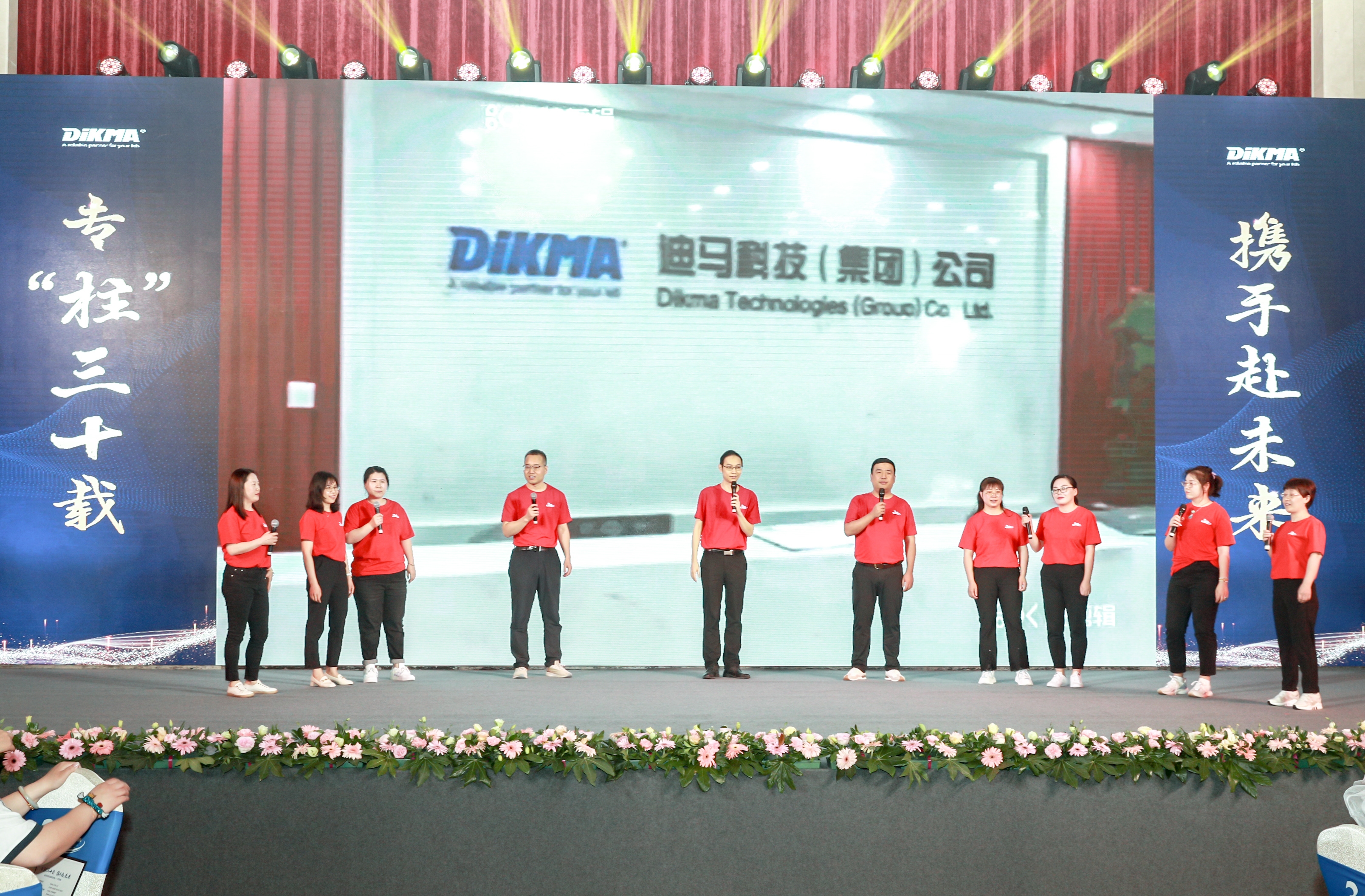 一场舞台剧,概括了迪马科技从成立,到拿到第一笔订单,再到开拓海外市场。一步一个脚印,稳稳当当、踏踏实实。台上大荧幕中播放着三十年来迪马科技的点点滴滴。往事涌上心头,过去的困难早已变为今日的欣慰、欢乐和希望。