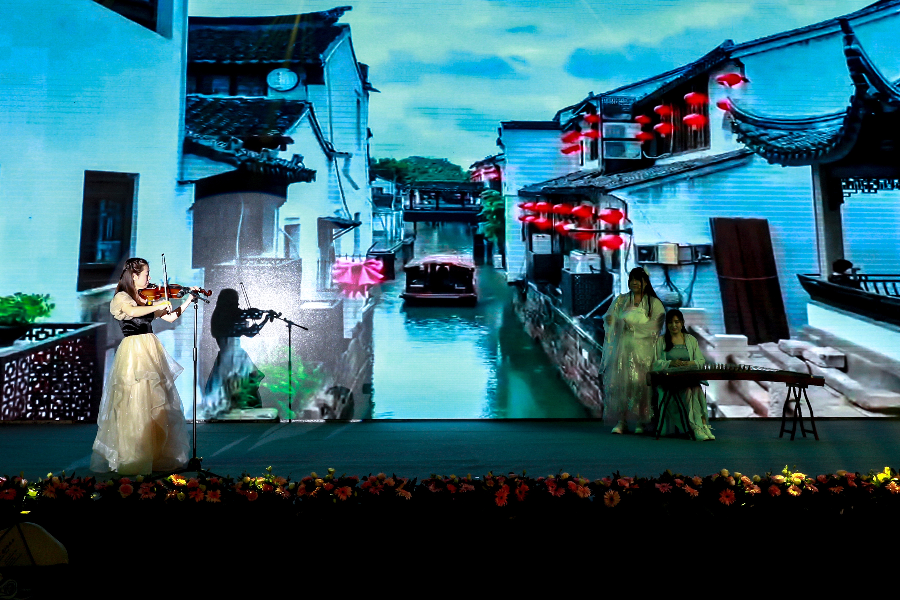 “弦依高张断,声随妙指续。”这或许是对古筝最精妙的描述。古筝登台,传统曲艺技能让观众眼前一亮。小提琴弦音如丝绢般轻滑,如溪水般缓缓流动。而后歌声融入琴声之中,舒缓涌入听众耳中,重回“种豆南山下”的悠然自得。
