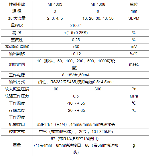 Siargo矽翔 气体质量流量计 - MF4000是专为管径为3mm~8mm的气体管路中的低速气流的流量计量而设计。螺纹与各种快速接口可轻松实现机械接口转换,满足用户多种气体管路的要求,该产品可用于过程控制、大气采样等各种工业应用。