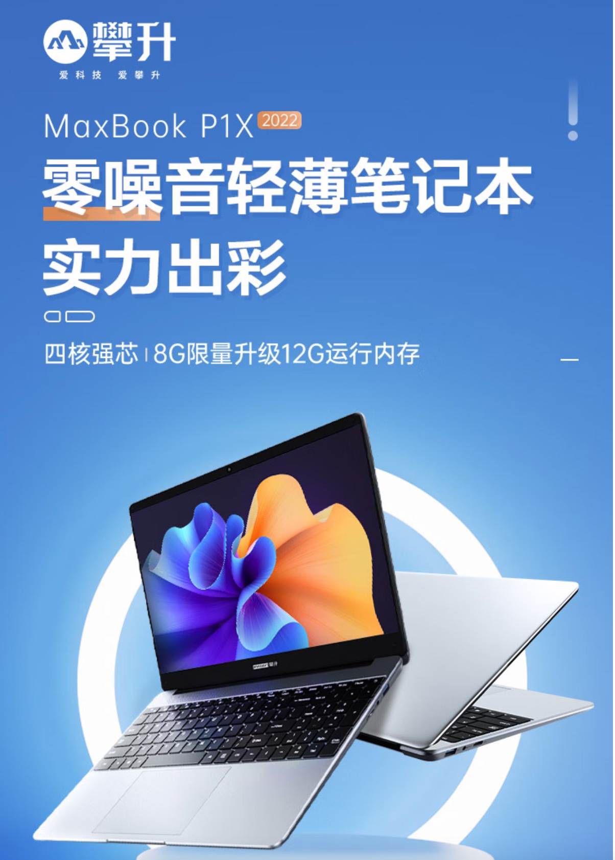 攀升 MaxBook P1X 2022 主打零噪音轻薄设计,全金属质感机身,机身厚度 19.6mm,重量 1.6kg,适合通勤外带。配置上,攀升 MaxBook P1X 2022 款搭载第 10 代英特尔 J4125 四核处理器,动态加速可达 2.7GHz,无论是网页浏览、网课学习还有多开办公应用都可获得更高效的流畅运行体验,游戏娱乐也不在话下。