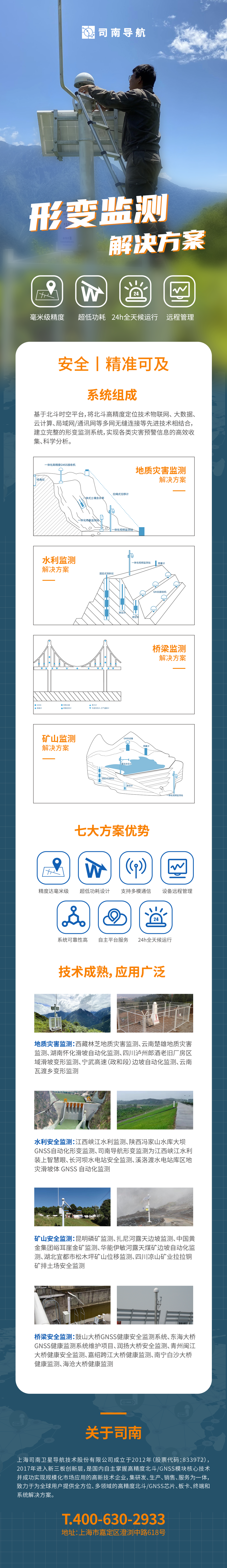 司南导航紧跟全球四大卫星导航系统兼容互用趋势,灵活满足不同行业的差异化需求,全面布局高精度GNSS生态圈,产品应用涵盖测绘地理信息、地基增强、智能交通、精准农业、机械控制、安全工程、工业测量等多个高精度领域,销售网络覆盖了亚太、欧洲、拉美、北美等全球六十多个国家与地区,在第29次南极科考、国家级北斗地基增强主框架网、中挝两国政府合作项目之东盟首座北斗CORS站、国家“西电东送”骨干工程溪洛渡水电站等重大工程建设中均发挥了重大作用。
