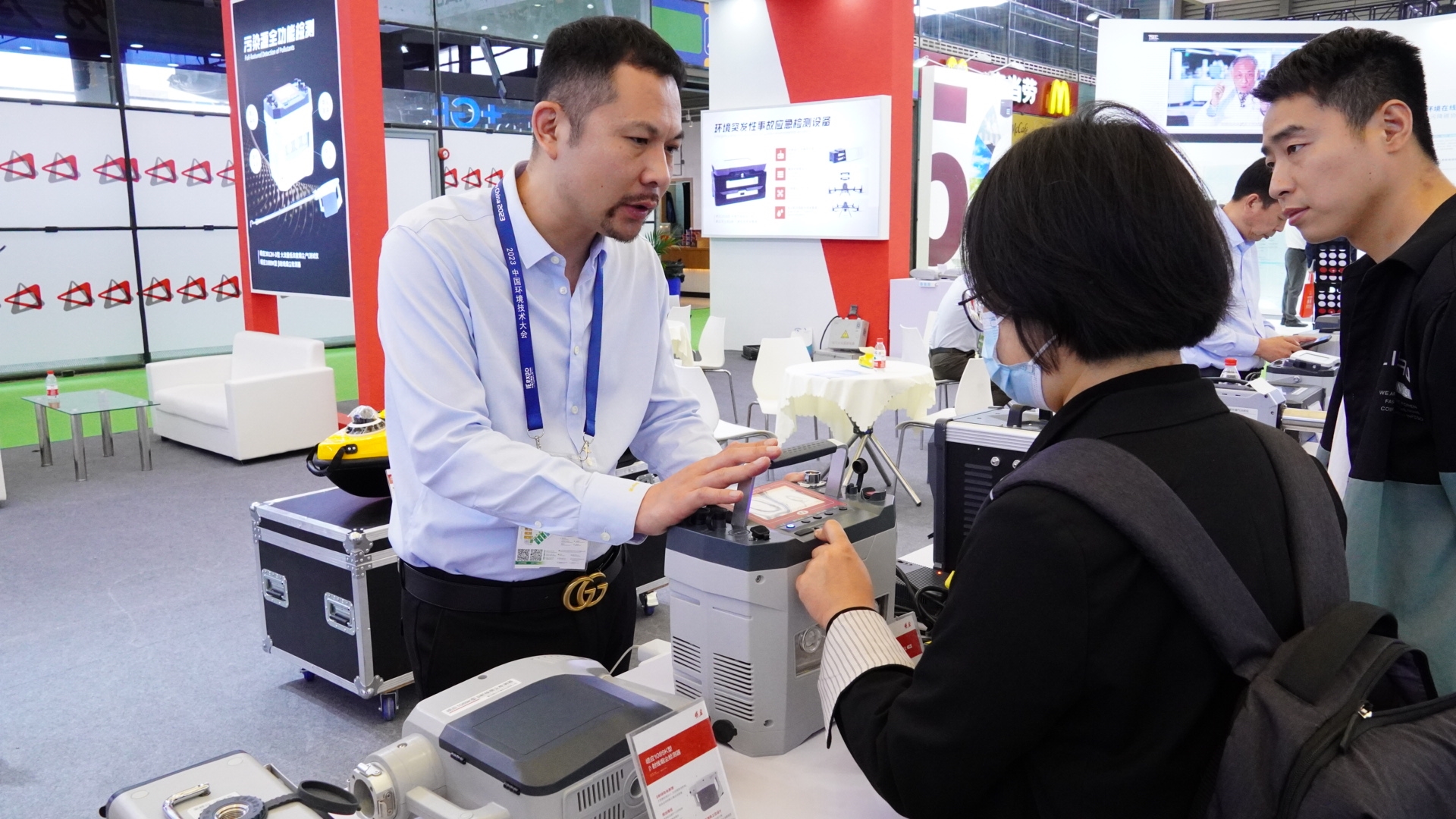 青岛崂应IE expo 2023现场工作人员为现场观众讲解产品