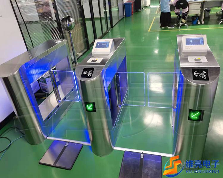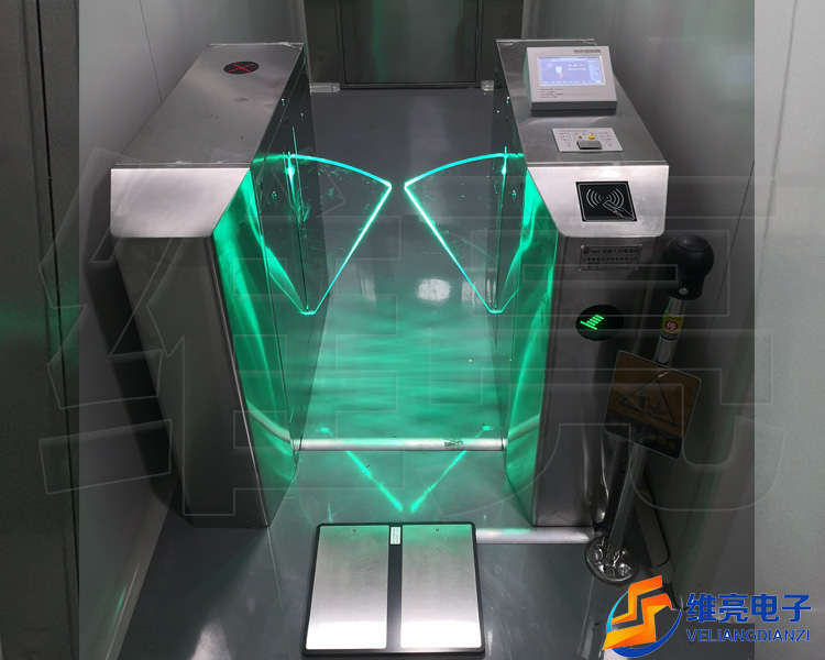 VEL防静电闸机原理:人体静电测试仪和闸机两部分联动工作。当人体综合电阻大于一定值时,人体静电不能导入大地,仪器报警不合法,报警信号传送给闸机,不予放行;当人体综合电阻在规定值范围内时,合法后,仪器发送有效信号给闸机,闸机放行,出门按钮出门。
