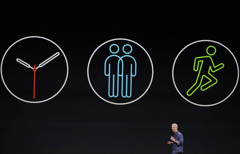 2014年,蒂姆·库克介绍第一代苹果手表。